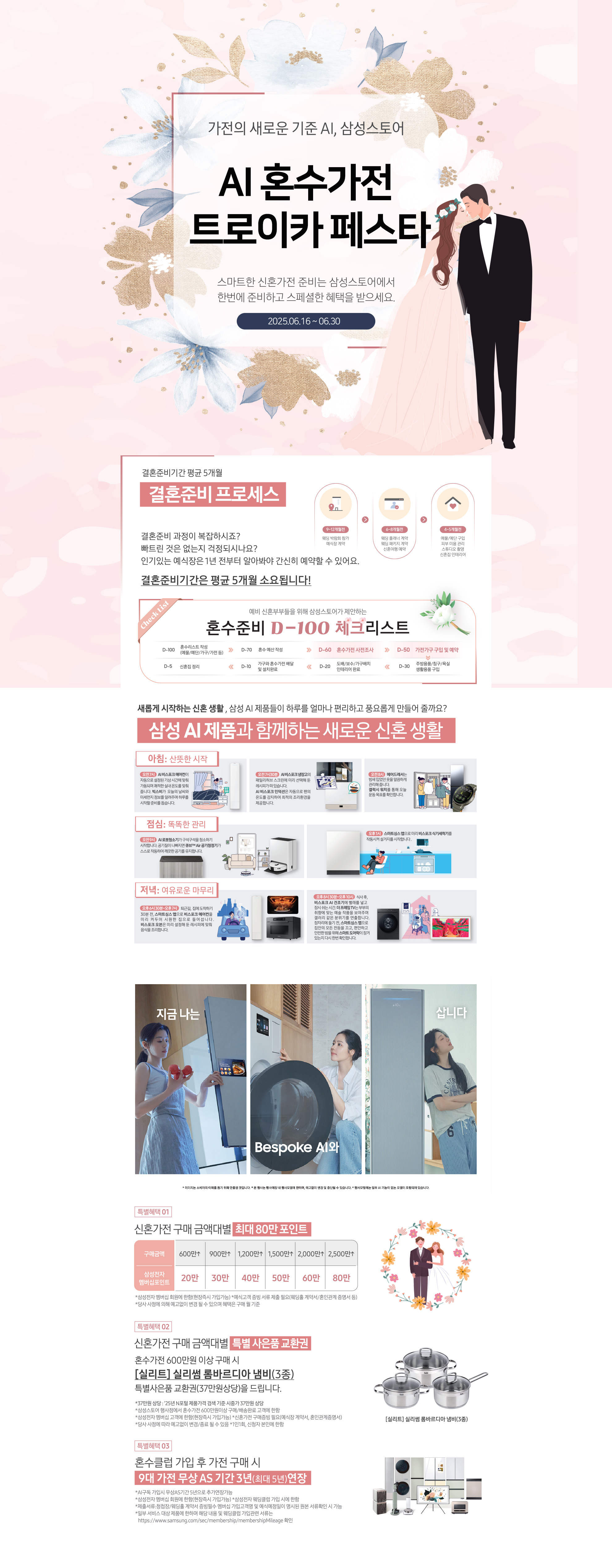 1. 개인정보 수집의 주체 웨딩크라우드 2. 개인정보 수집 및 이용목적 회사(웨딩크라우드)는 서비스 제공 및 고객지원을 위하여 개인이 식별 가능한 개인정보를 수집하며, 수집된 개인 식별 가능한 개인정보는 위 수집 목적 이외의 용도로는 사용되지 않습니다. 기타, 개별 개인을 식별할 수 없는 개인정보의 통계결과는 회사가 영업 및 기타 활동을 위하여 사용될 수 있습니다. 3. 개인정보의 수집 항목 이름, 성별, 휴대폰번호, 결혼예정일, 방문예정일, 입주일, 관심항목 4. 개인정보의 보유 및 이용기간 이용자의 개인정보는 개인정보의 수집목적 또는 제공받은 목적이 달성되면 파기하는 것을 원칙으로합니다. 또한 이용자 본인에 의한 가입해지와 개인정보 삭제 등의 요청 이전까지 회원정보를 보관합니다. 다만, 회사(웨딩크라우드)는 불량 회원의 부정한 이용의 재발을 방지하기 위해 일정기간동안 이용자의 개인정보를 보유할 수 있습니다. 개인정보 제3자 제공 동의 1. 개인정보를 제공받는 자 :삼성전자판매㈜ 2. 제공항목 : 이름, 성별, 휴대폰 번호, 예식일, 입주일, 관심항목 3. 이용목적 : 혼수 가전 제품 판촉 관련 TM/MMS 업무 시행 4. 보유 및 이용기간 : 10개월 ※ 귀하께서는 귀하의 개인정보를 제3자에게 제공하는 것에 대한 동의를 거부하실 수 있으나, 이는 TM 등 서비스 제공에 필수적인 제공이므로, 동의를 거부하실 경우 서비스 이용 등이 제한됩니다. 본인은 위와 같이 본인의 개인정보를 제3자에게 제공하는 것을 동의합니다. ※ 위 사항에 대한 동의를 거부할 수 있으나, 이에 대한 동의가 없을 경우 관련 편의 제공에 일부 제한이 있을 수 있습니다